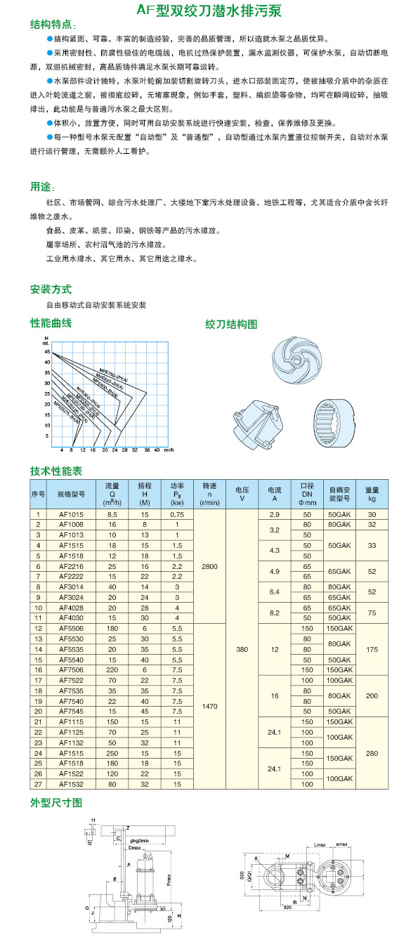 AF型雙絞刀潛水排污泵